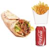 Menú Durum Kebab de Pollo y Ternera, con verduras y salsa especial, patatas fritas y bebida